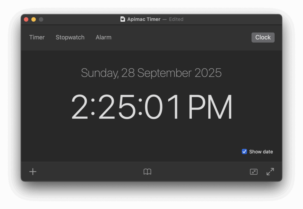 Timer combines stopwatch, countdown timer, and alarm clock in a single professional utility designed specifically for Mac. With its clean and intuitive interface, it’s easy to move between the different modules and set up exactly what you need in just a few clicks. Whether you are studying, working, training, or conducting experiments, Timer adapts to your context and provides you with tools that are both simple to use and powerful in functionality. You can try Timer for free for a limited number of launches to discover all its potential, and then unlock the full version to keep using it without restrictions.